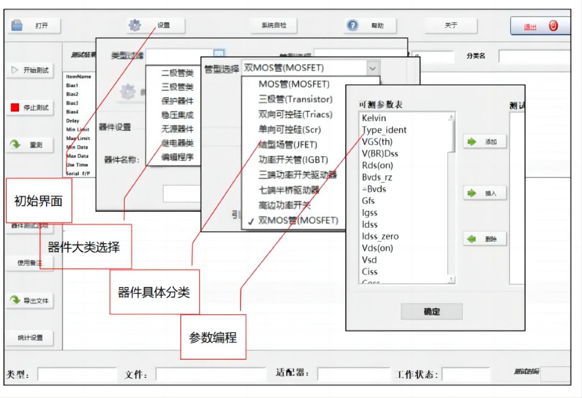 STD2000半導(dǎo)體參數(shù)測試儀系統(tǒng)能測很多電子元器件(如二極管、三極管、MOSFET、IGBT、可控硅、光耦、繼電器等等)產(chǎn)品廣泛的應(yīng)用在院所高校、封測廠、電子廠.....